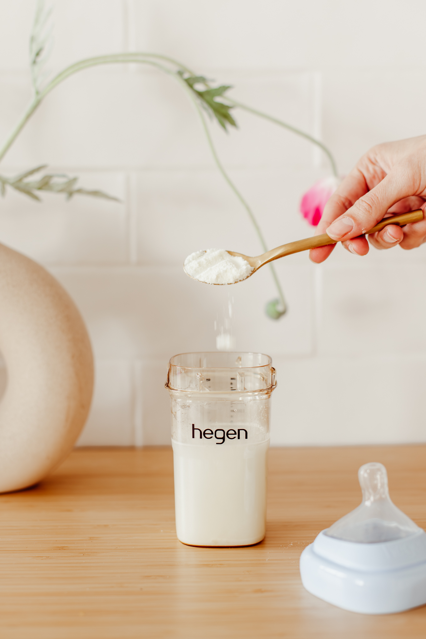 De vorm van de Hegen fles is “sqround” – oftewel een mix tussen rond en vierkant. Hierdoor zijn Hegen flessen ergonomisch fijner voor baby’s om hun fles eerder zelf vast te kunnen houden. Daarnaast zijn de flessen door hun brede vorm stapelbaar en eenvoudig te reinigen.