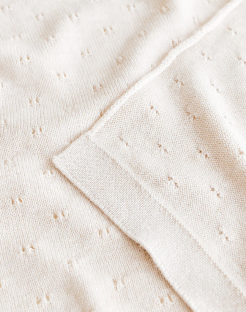 Het Hvid dekentje Bibi is een klassiek ajour-dekentje gemaakt uit 100% zachte merinowol en door zijn medium dikte is het geschikt voor alle seizoenen! Heerlijk voor je kleintje om onder te slapen in een wiegje, bedje of voor in de kinderwagen.