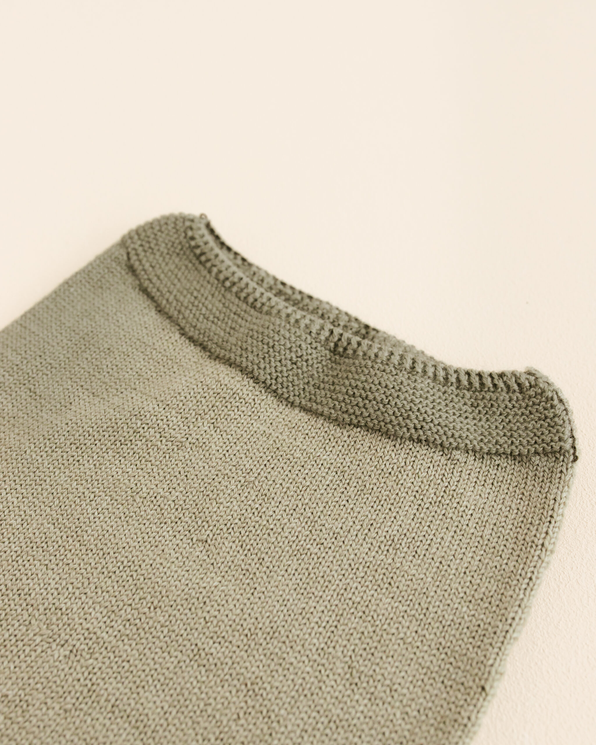Deze naadloze broek is gebreid uit één stuk, wat het bijzonder comfortabel maakt voor baby’s. De zachte elastische tailleband zorgt voor extra draaggemak, terwijl het verlaagde kruis voldoende ruimte biedt voor de luier. Het is geschikt om het hele jaar door te dragen. Combineer de kleuren naar wens met de rui, cardigan of vest voor een complete set. Deze broek heeft een ruime pasvorm, waardoor het langer dan drie maanden gedragen kan worden. Rol de pijpen om aan het begin voor een perfecte pasvorm.