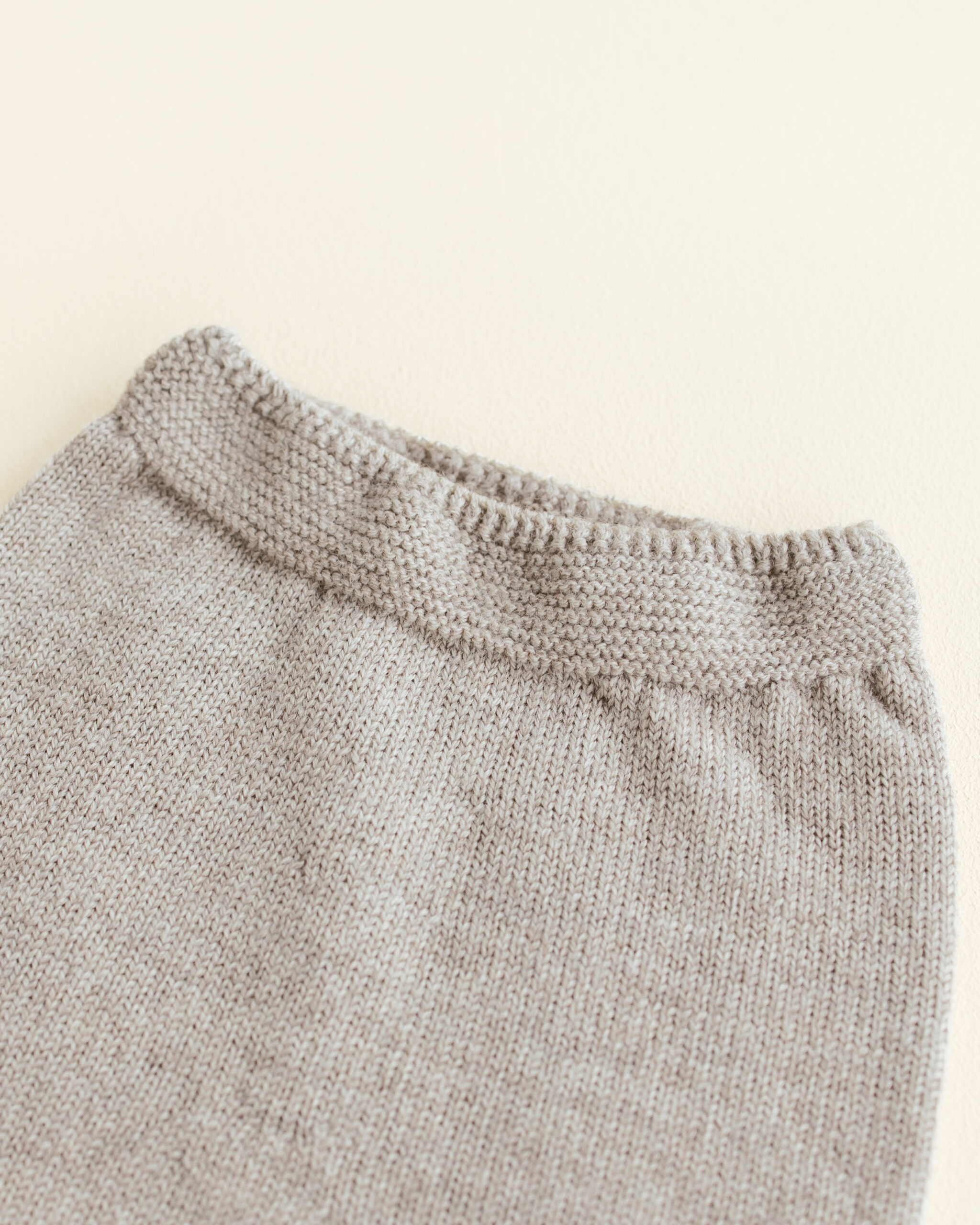 Deze naadloze broek is gebreid uit één stuk, wat het bijzonder comfortabel maakt voor baby’s. De zachte elastische tailleband zorgt voor extra draaggemak, terwijl het verlaagde kruis voldoende ruimte biedt voor de luier. Het is geschikt om het hele jaar door te dragen. Combineer de kleuren naar wens met de rui, cardigan of vest voor een complete set. Deze broek heeft een ruime pasvorm, waardoor het langer dan drie maanden gedragen kan worden. Rol de pijpen om aan het begin voor een perfecte pasvorm.
