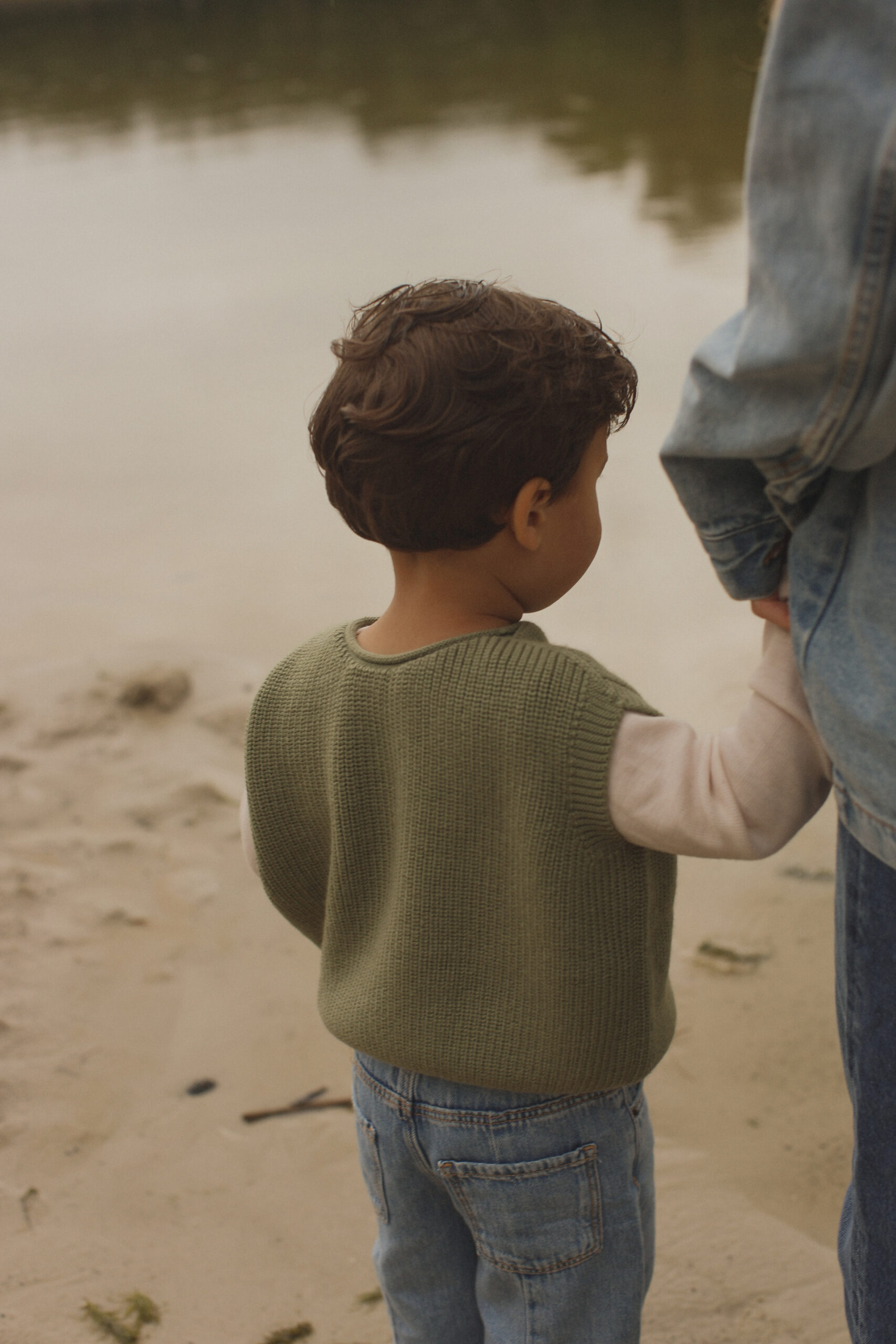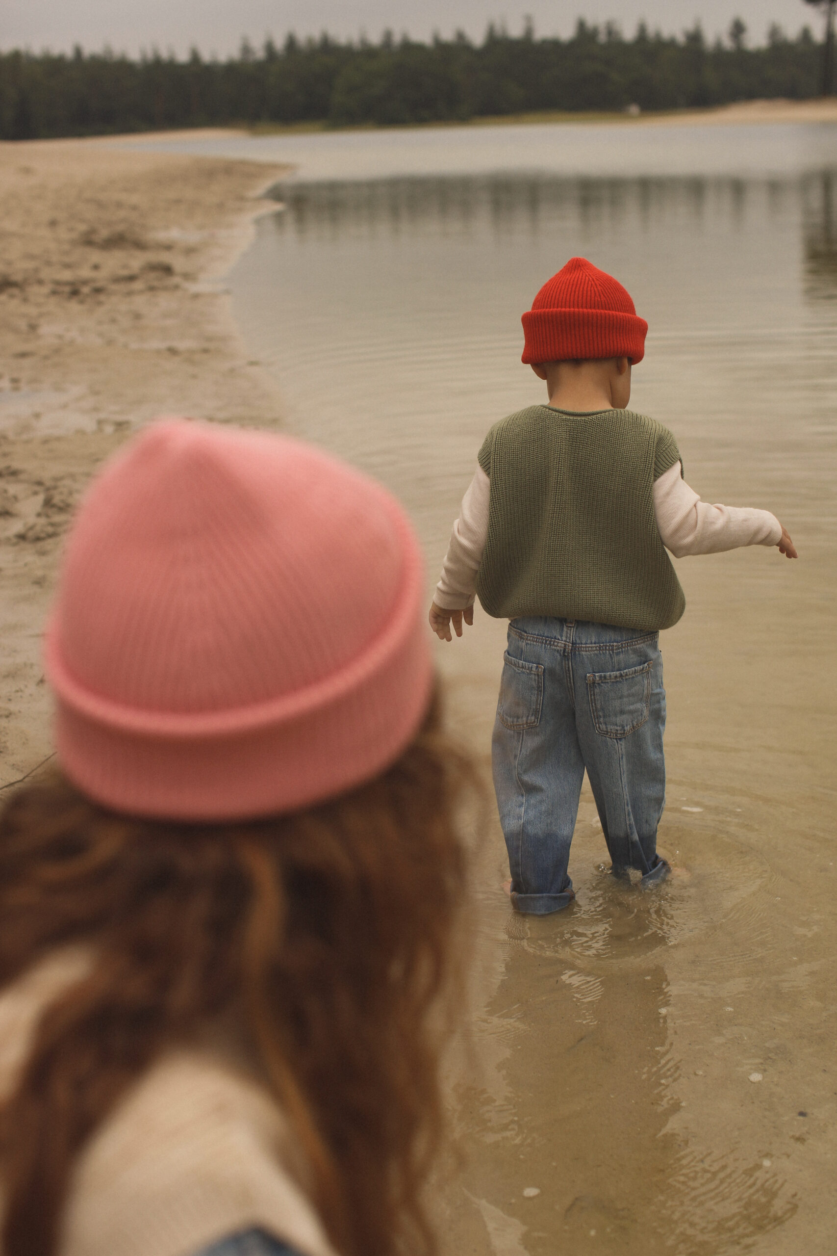 Dit naadloze vest is in één stuk gebreid, wat zorgt voor optimaal comfort voor kinderen. De subtiele elastische draad in de kraag maakt de hals rekbaar bij het aantrekken en sluit daarna mooi aan. De fisherman’s rib geeft het vest een heerlijk zachte textuur. Dit model heeft een rondere pasvorm dan de babyversie en een bredere rib band aan de onderkant, wat zorgt voor een baggy look. Eenvoudig te combineren met een shirt of blouse voor een speelse outfit.